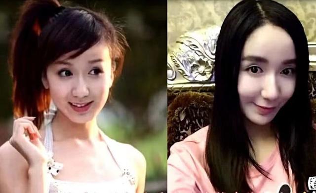 我们把她年轻时候的照片对比现在,可以很明显地发现,下巴变尖了,不是变瘦了,而是骨骼弧度有很大区别,还有鼻子的鼻头也变小了。