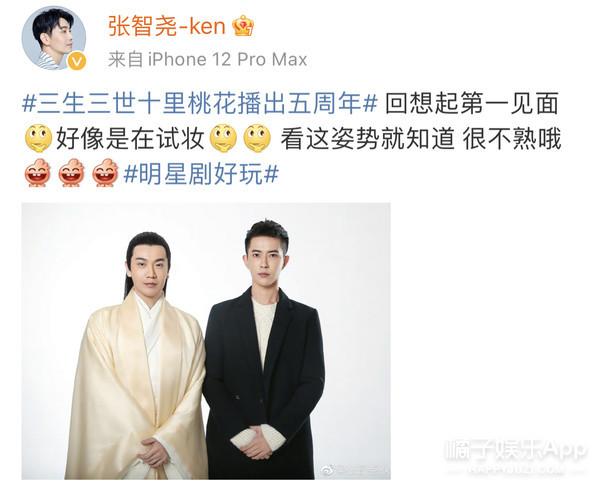 折颜上神的饰演者张智尧发微博晒出了和白真于朦胧第一次见面时的试装合照,